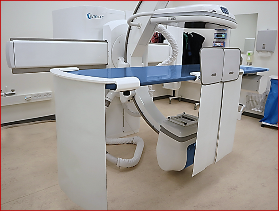 The Intelli-C offers the latest technology to optimise image quality, reduce the dose and improve efficiency in radiology and GI departments. The leading-edge tilt C-arm can perform a wide range of procedures from radiographic and fluoroscopic to interventional and image-guided GI studies by offering optimised image quality, advanced software, and ergonomic design. Optional removable table.